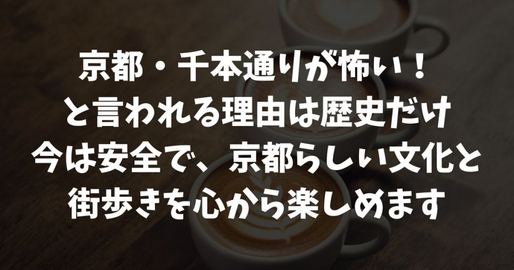 千本通りが怖い! と言われる理由は、実は歴史だけの問題だったんです。 千本通りは「怖い」と言われていますが、その正体は心霊現象や治安の悪さではなく、長い歴史と人々の暮らしが重なっていることにあります。 かつて死者を見送る葬送の道として使われ... -